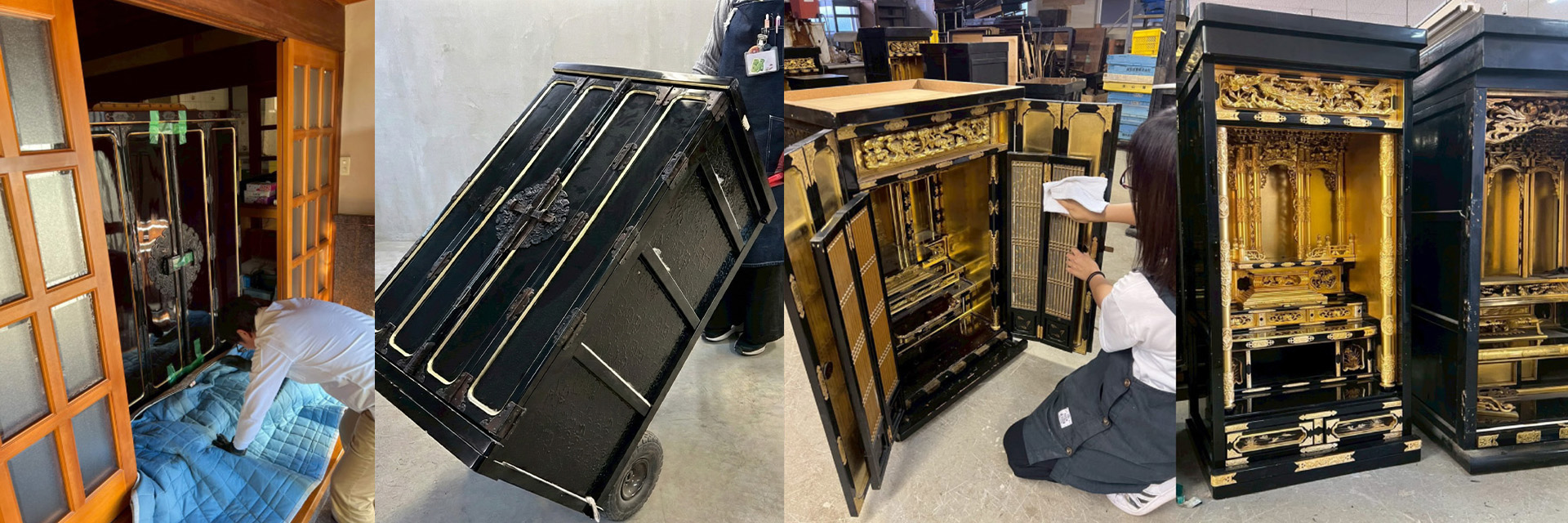 【東海エリア】愛知県・岐阜県・三重県 、【関西エリア】大阪府・奈良県、【九州エリア】福岡県※上記エリア近隣の都道府県にお住まいの方も、お仏壇の種類や内容によっては対応可能な場合がございます。まずはお気軽にご相談ください。